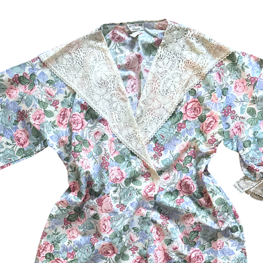 Vintage Floral Lace Wrap Maxi Robe Dress