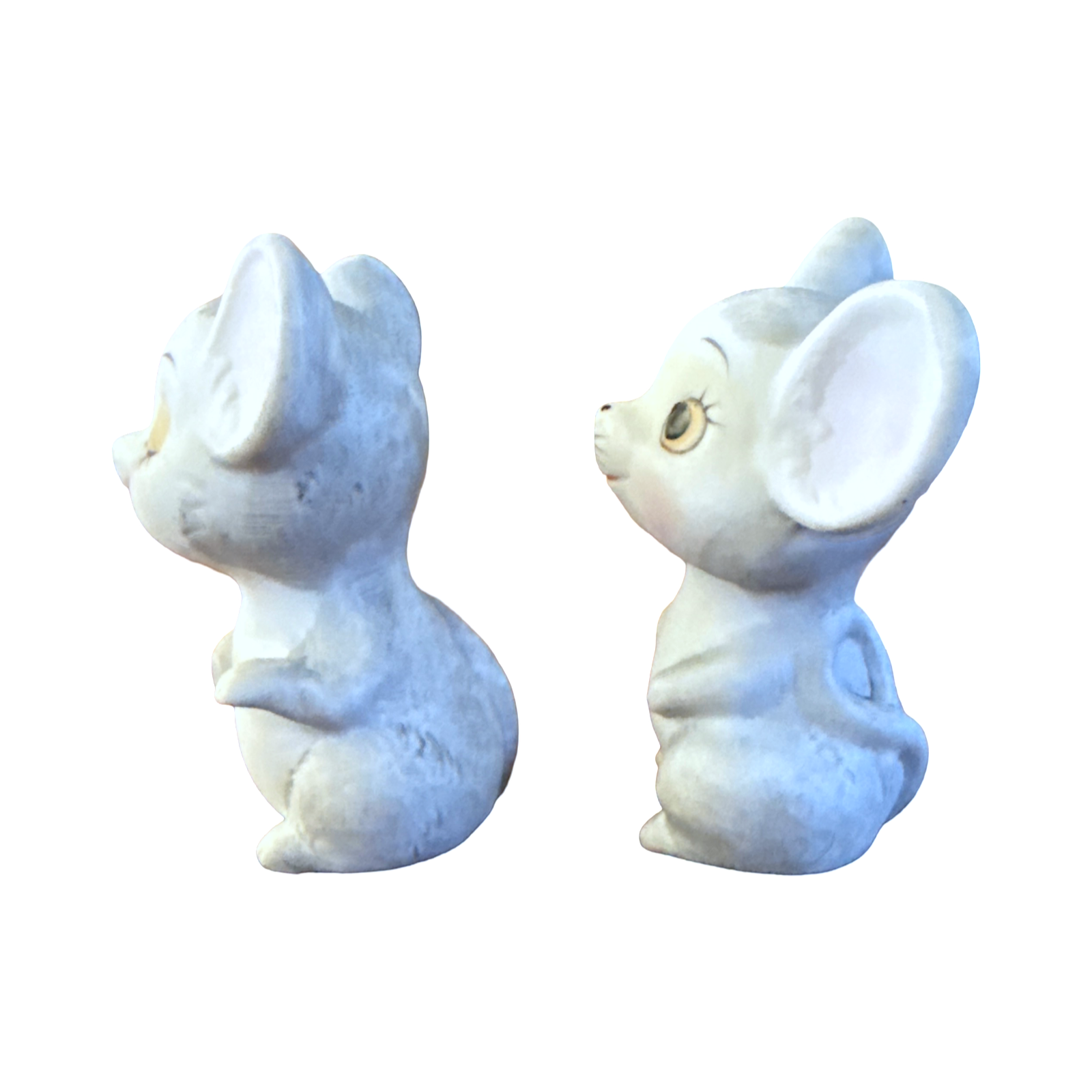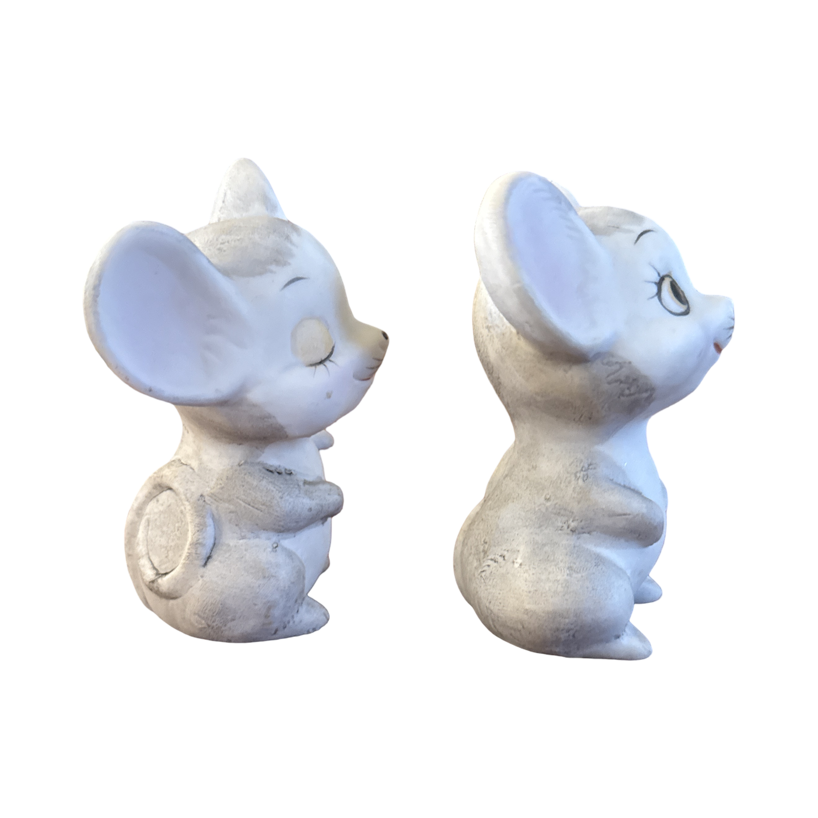 Vintage kitschy set of 2 bisque ceramic mice figurines